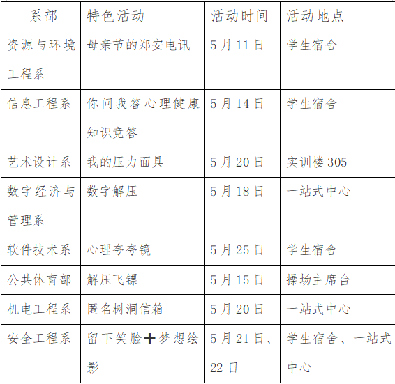 活动方式:心理健康教育中心、第一餐厅门口广场、一站式中心