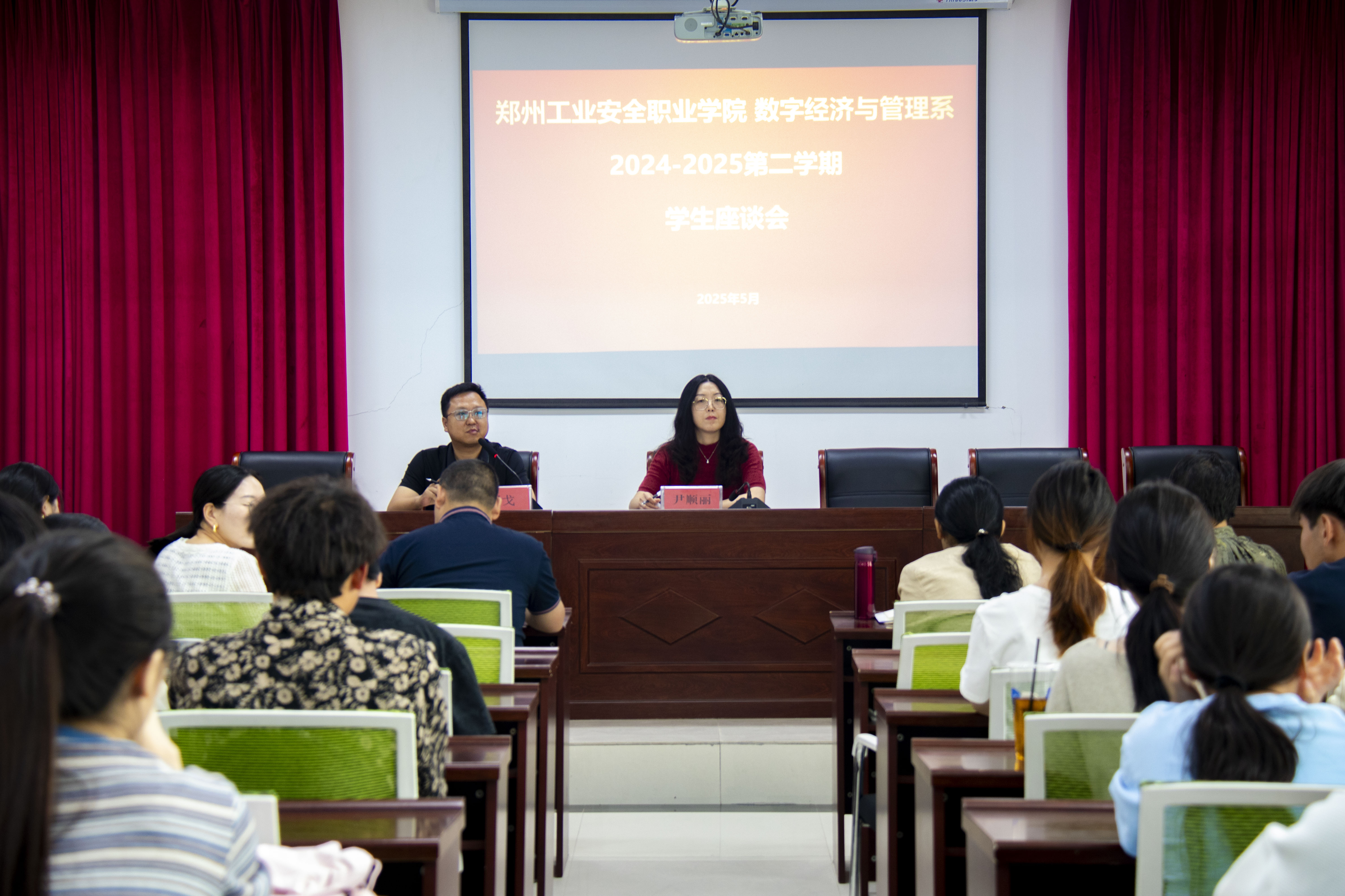 为进一步优化教学管理工作,提升教师教学质量,增强师生间沟通,5月6日,数字经济与管理系召开了学生座谈会和教师座谈会。会议由教研室主任安媛主持,系主任尹顺丽、副主任程戈携全体教师和班级学生代表参会,旨在听取师生意见,集思广益,共同推动系部发展。