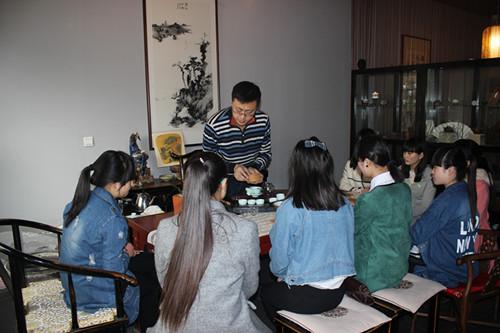 按照我校国示范重点专业旅游服务与管理的建设要求,为加深学生对茶艺课理论的理解,提高实操能力,熏陶行业精神,我系3月26日、27日上午分别安排14-6班、14-5班学生在班主任吴顺顺、外聘茶艺教师张冰宇、我系教师娄本杰、崔可等的带领下前往北茶城进行了为期半天的茶艺课实训学习。同学们在装修雅致的茶店里,实地分组学习了选茗、择水、烹茶、茶具、环境创设等一系列内容,通过沏茶、赏茶、闻茶、饮茶的实际操作,将课堂上枯燥抽象的理论知识与生动形象的茶艺活动相结合,使同学们充分领略了茶性清纯、幽雅、质朴的气质,领悟了茶文化的博大精深,极大地激发了学习兴趣。