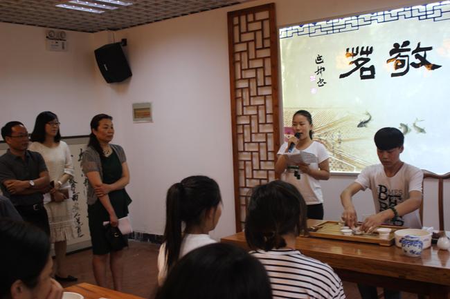 极具中国风的商务系茶艺实训室经过一个月的升级改造,5月底闪亮登场,5月28号正式开课,我校主管教学的张立副校长,教务处薛东亮处长、党办乔延坤主任、商务系尹顺丽主任一行来到茶艺室,欣赏同学们刚刚学到的茶艺表演。