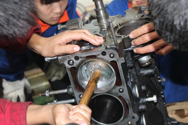 在校领导的大力支持和党政办公室的积极配合下,我校机电工程系汽车运用与维修专业14-1班学生于10月26日至11月1日进行了为期一周的汽车大修实战训练。11月2日圆满地完成了本次实战任务。 11月3日在我校汽车实训中心隆重举行了汽车大修实战训练点火仪式,莅临点火仪式的校领导有:校长朱鸣、党委书记寇守峰、副校长张立、工会主席王雪瑞。